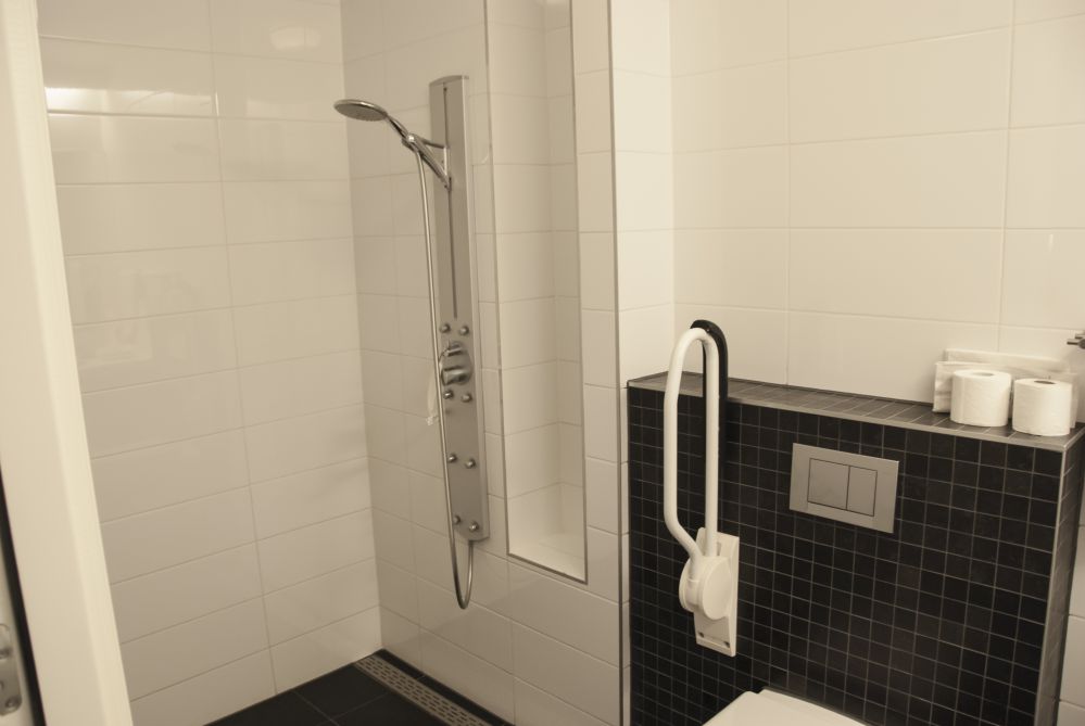 - Badkamer met meervoudige douche (geschikt voor minder validen)